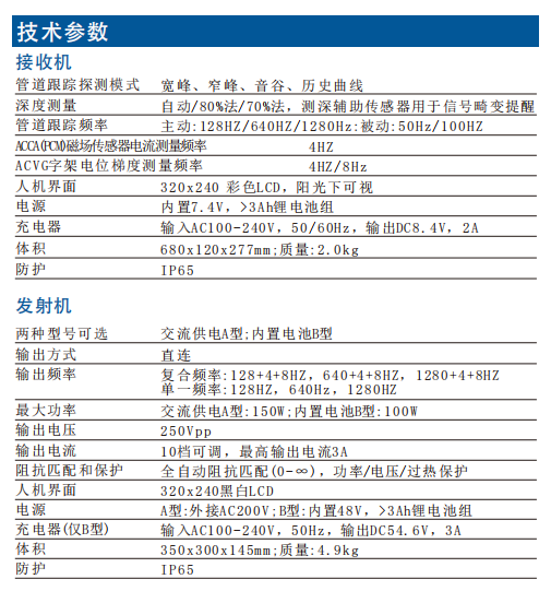 ●多种频率,复合频率可使跟踪定位测深/ACCA/ACVG测试可随时进⾏,⽆须切换